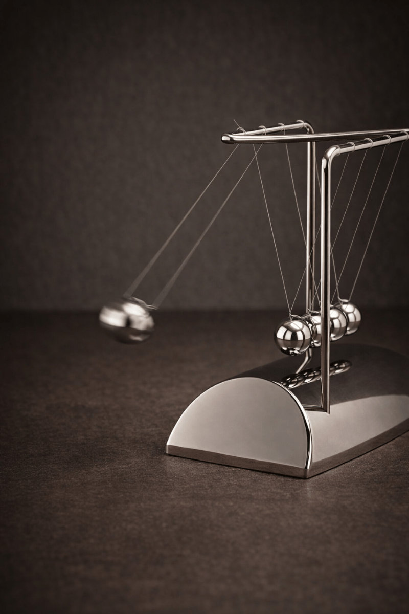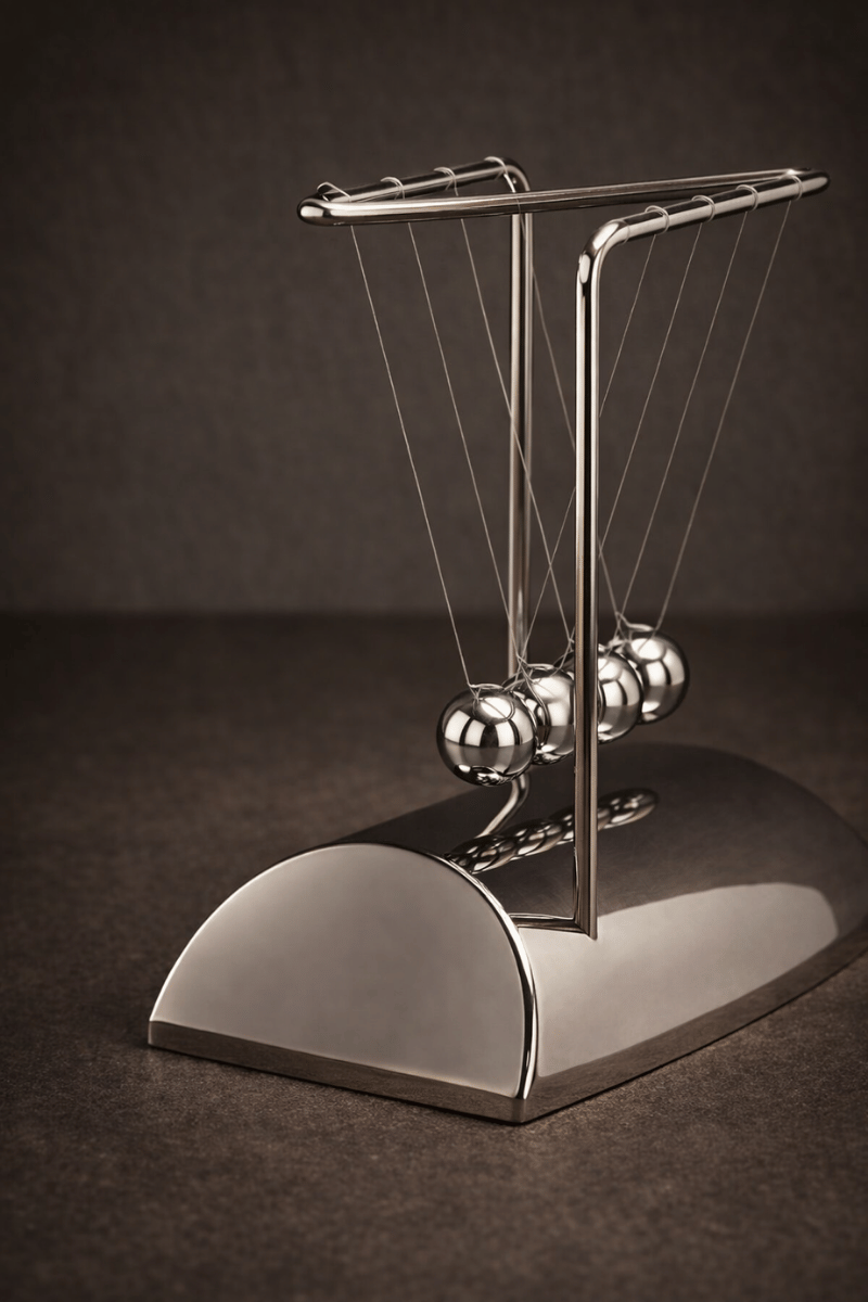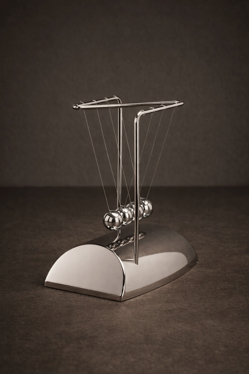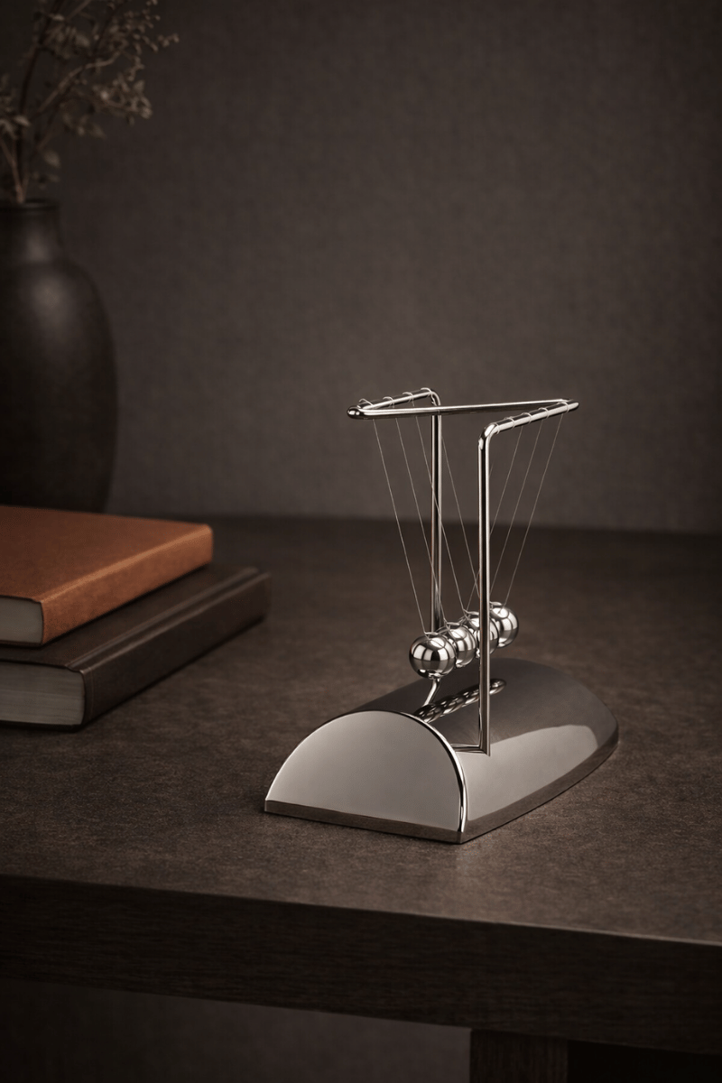 Zamanın ritmini ve dengenin kusursuz uyumunu tek bir formda buluşturan Newton Beşiği, mekâna sessiz ama güçlü bir karakter kazandırır.